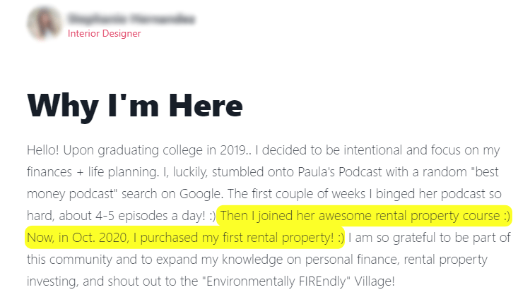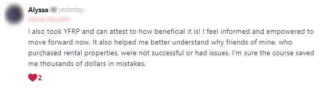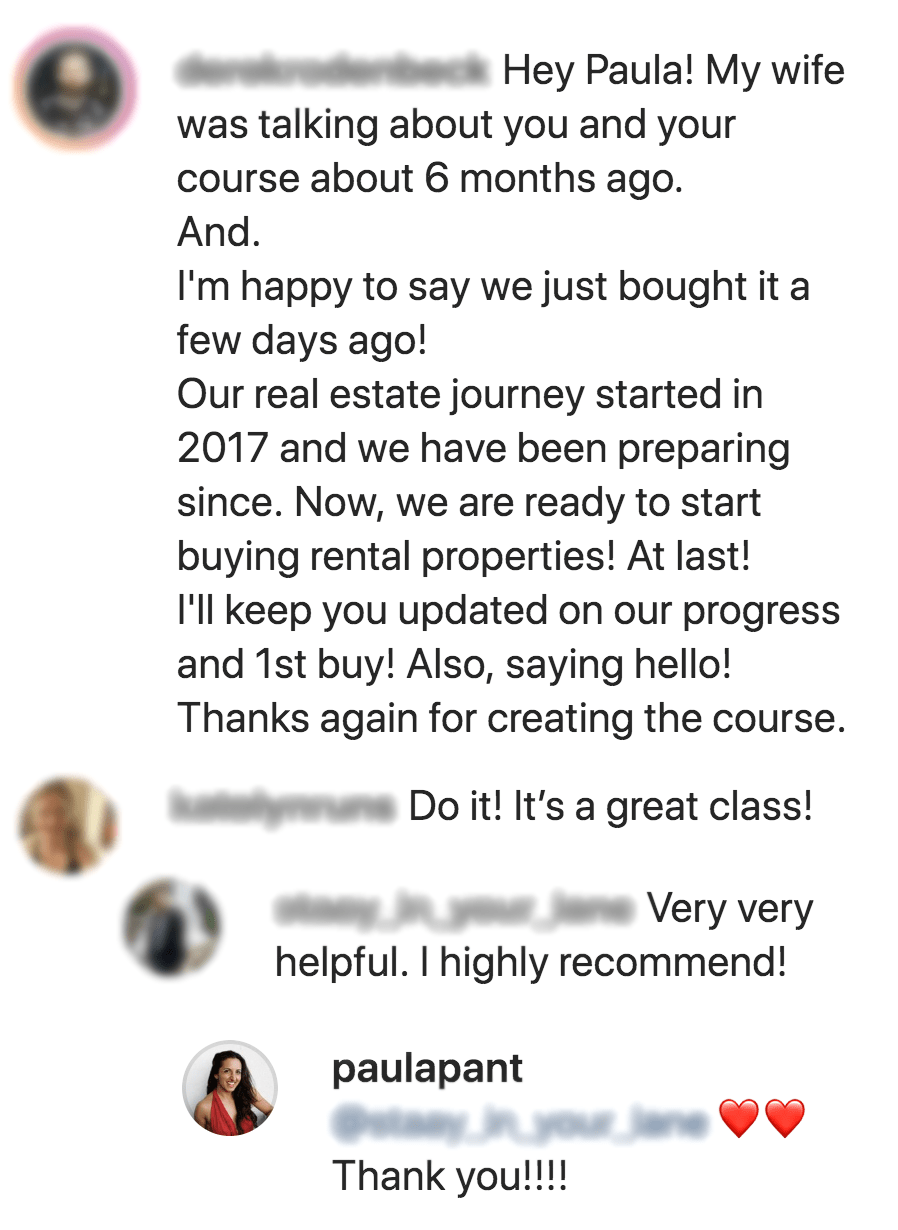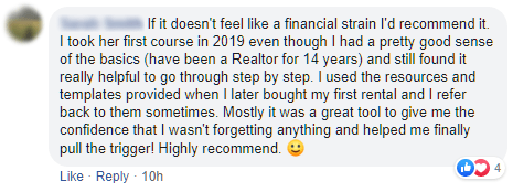 That said, quite a few students have purchased vacation rentals with the knowledge they gained in the course, but we're primarily focused on long-term, buy-and-hold residential real estate. 🙂